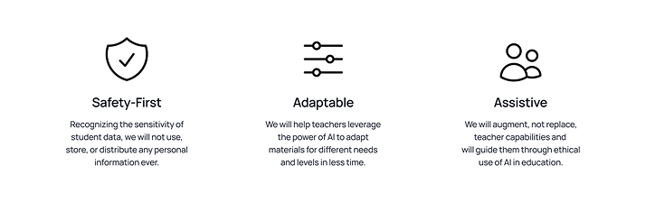 Now that we had a concept in mind, but we before we started designing we needed a guide to our process. So, we co-created principles that prioritize ethics, adaptability, and educator empowerment and set the foundation of the value we were trying to embody as a product and organization.
