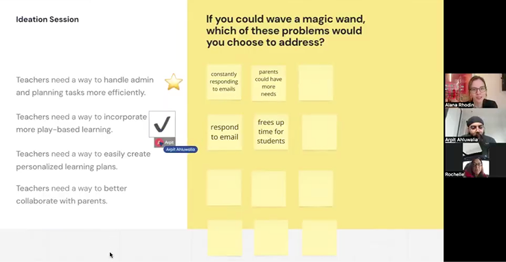 We also facilitated Co-Design Workshops (7 sessions across 3 rounds, 60-75 minutes each) which ensured our solution was built with and for teachers every step of the process from ideation to prototype.